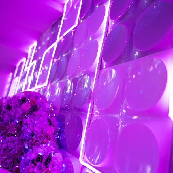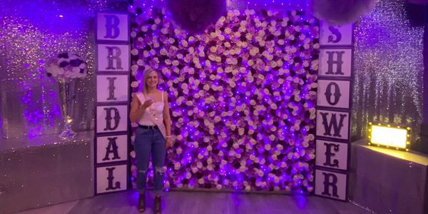 Use of LED lit Flower Wall with "BRIDE" blocks